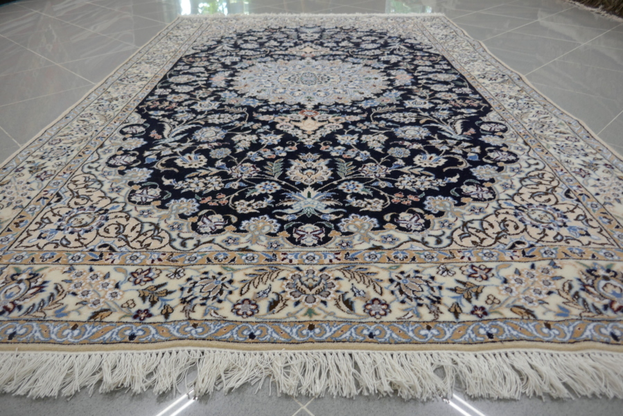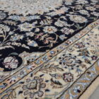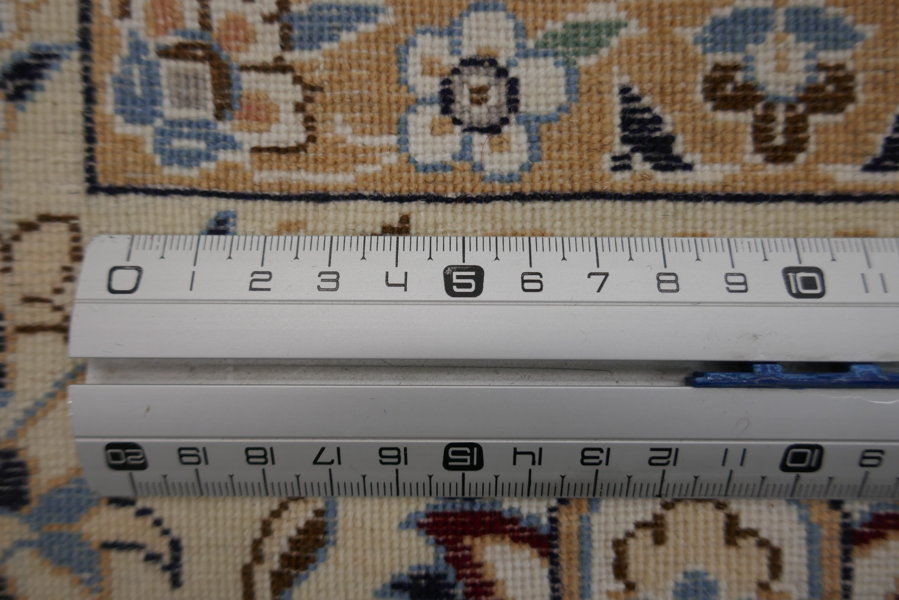 I Nain nacquero quindi come produzione d’eccellenza e di riscatto dell’alta qualità degli esemplari persiani e meritano in breve tempo grande fama grazie ad un’annodatura fittissima e compatta che permetteva di rasare il vello molto basso dando il massimo risalto ai raffinati decori floreali, agli arabeschi, ai grandi medaglioni centrali. Per questi capolavori, inoltre, venivano utilizzati solo materiali di prima scelta: lane kork per il vello, ottimo cotone per trama e ordito e seta naturale per i profili dei disegni secondo la tecnica gharty che conferisce ai particolari una maggiore lucentezza facendoli risaltare anche nelle tonalità tono su tono.